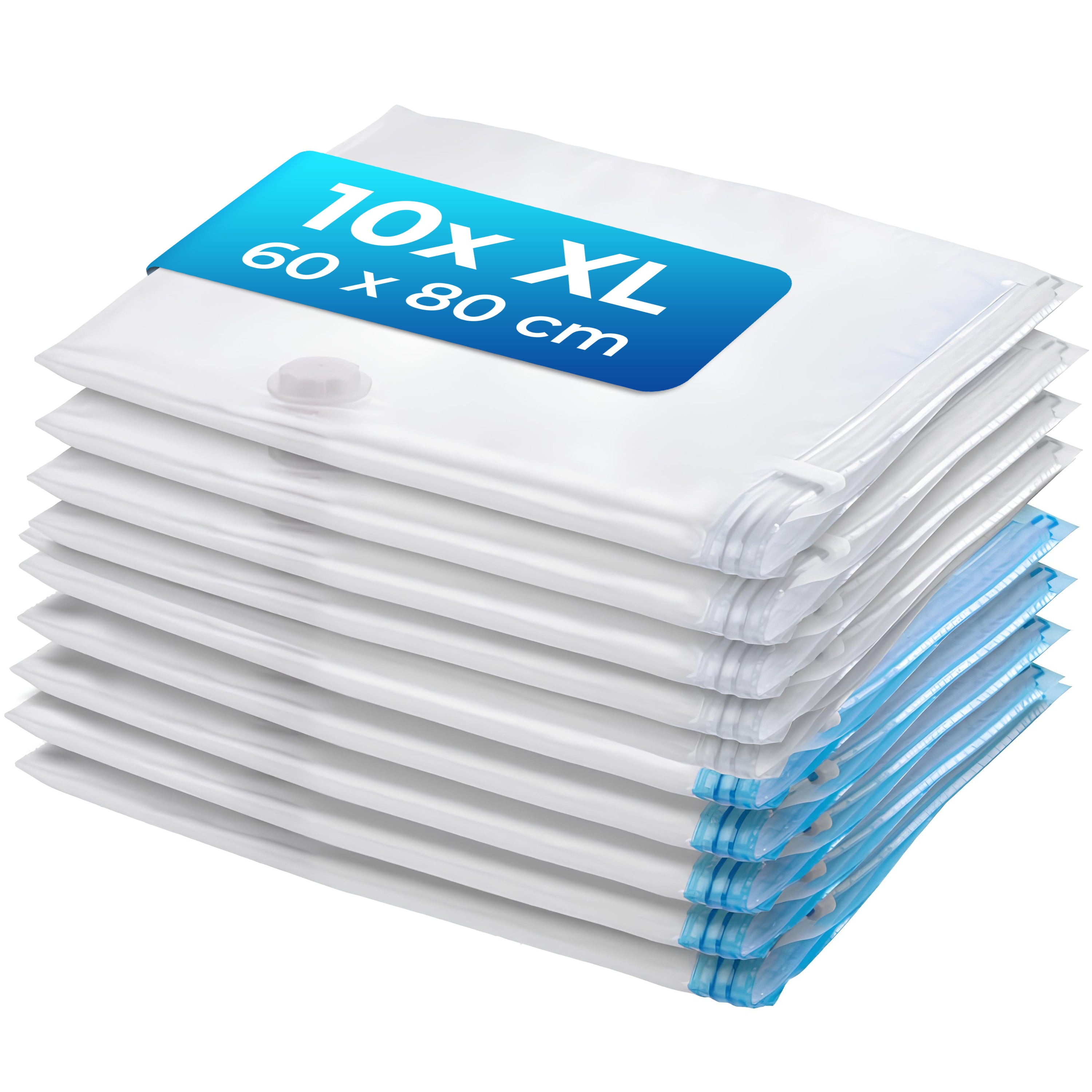 Mit unserem 10er Set Vakuumbeutel erhältst du die perfekte Alltagslösung für deine Textilien. Jeder Beutel misst 60 x 80 cm und bietet genug Platz für Pullover, Hosen, Kissen und vieles mehr. So schaffst du im Handumdrehen Ordnung und sparst bis zu 80% Platz. Mit einem handelsüblichen Staubsauger versiegelst du die Beutel luftdicht und schaffst langfristig Raum für alles, was dir wichtig ist.