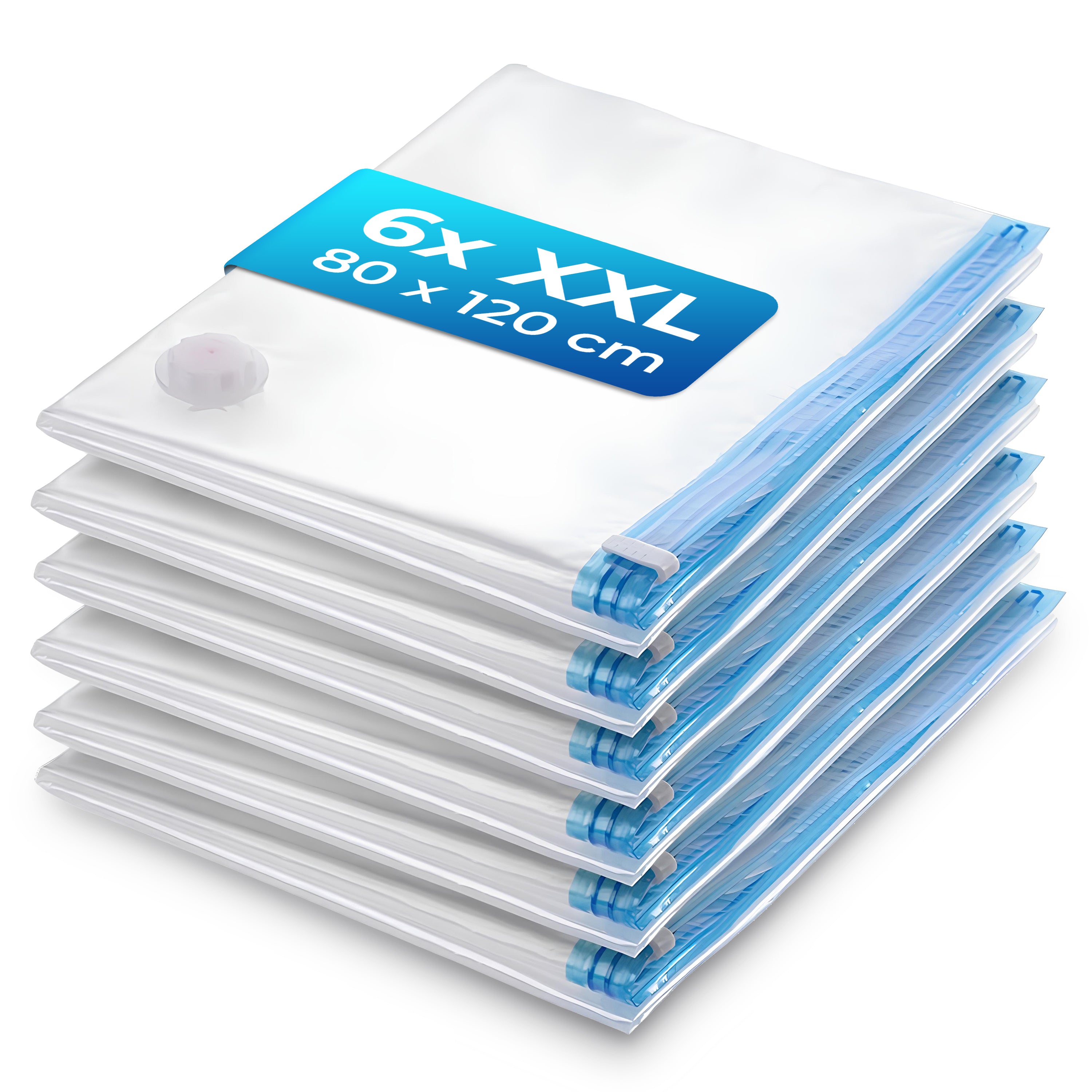 Dieses Set enthält 6 extra große Vakuumbeutel mit den Maßen 80 x 120 cm. Ideal für Bettdecken, Kissen oder Wintermäntel, die in herkömmlichen Beuteln oft keinen Platz finden. Komprimiere deine Heimtextilien um bis zu 80% und schaffe im Handumdrehen Platz! Wie immer brauchst du nur einen Staubsauger, um die Beutel luftdicht zu versiegeln.
